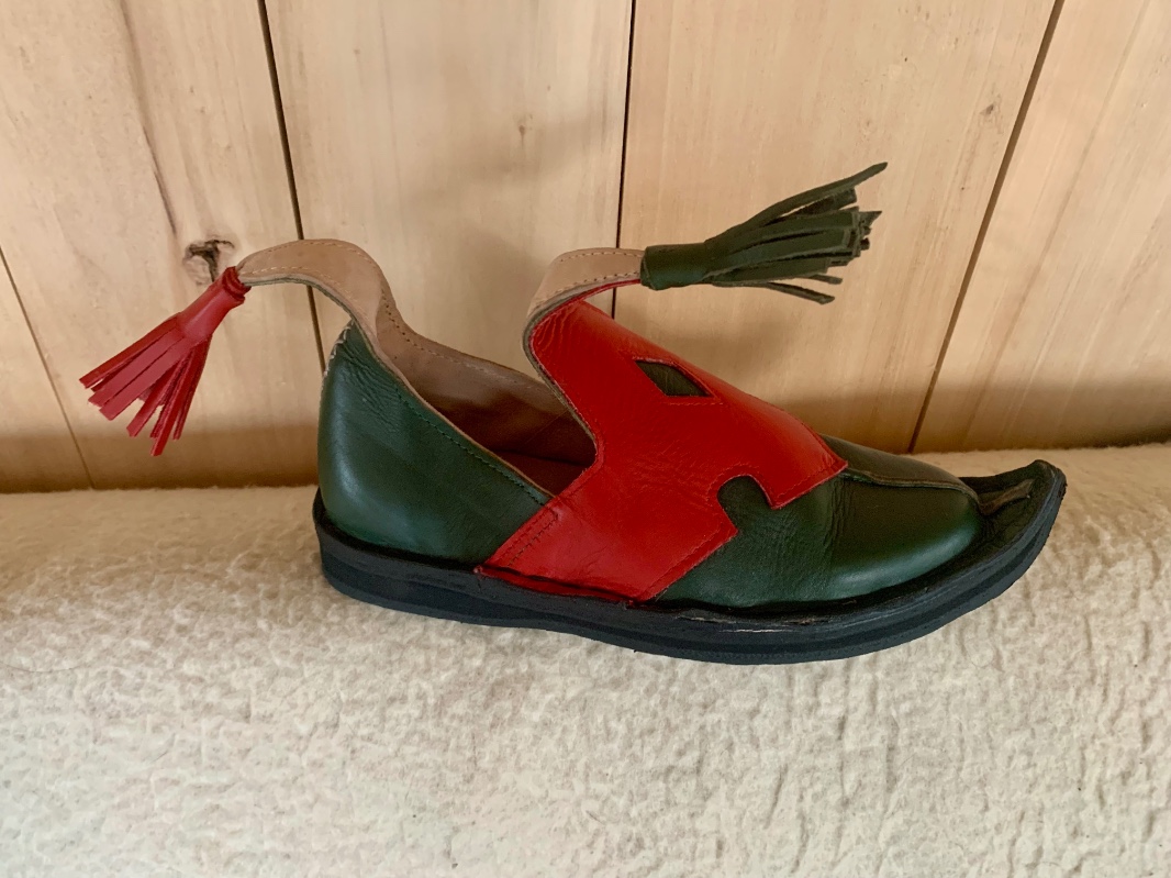 Poulaine basse en cuir de vachette, cousue main et doublée cuir.